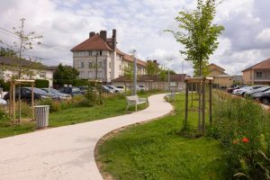 C’est à l’été 2024 que le parking des Frères Heckler – rebaptisé square Marie Marvingt – a été entièrement réhabilité (dans le cadre du concours ‘Eau et quartiers prioritaires’, mené avec la participation de la FREDON Grand Est).